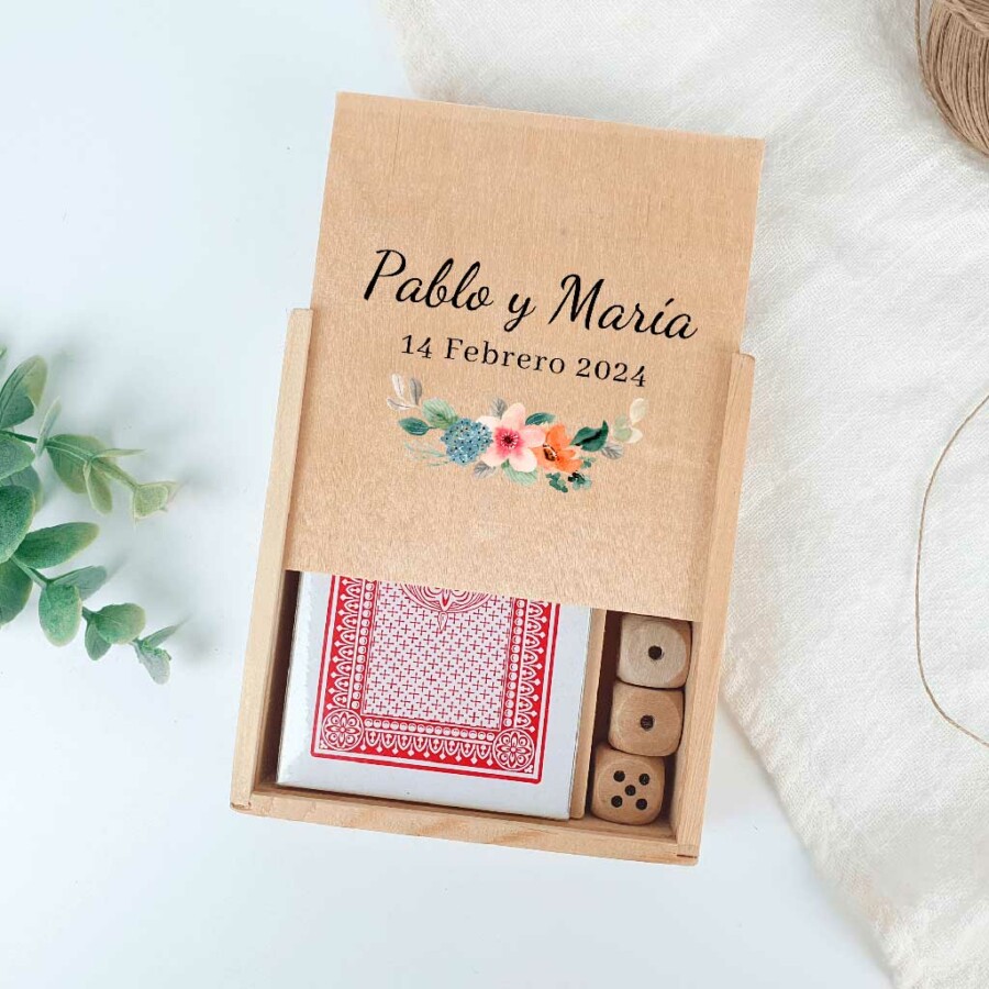 Cada set viene con 9 piezas y está alojado en un estuche de madera con tapa deslizante, lo que lo hace un regalo compacto y fácil de transportar. Puedes personalizar la tapa con la fecha de la comunión y el nombre del homenajeado, lo que transforma este juego de 3 en raya en un recuerdo único y atesorado.